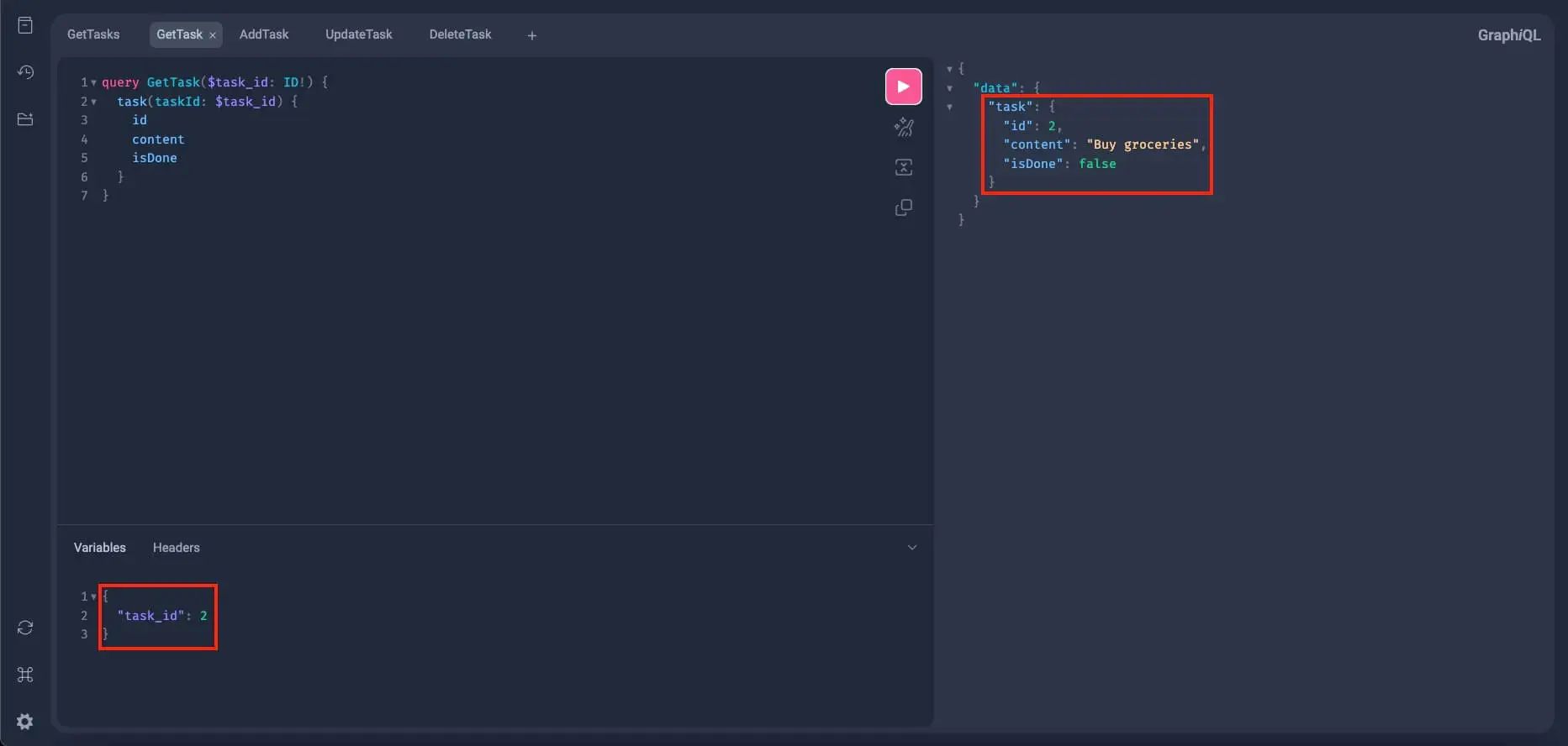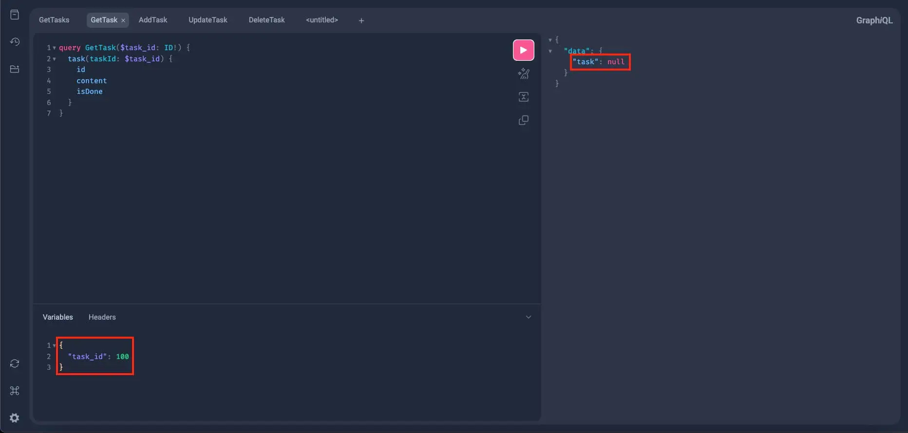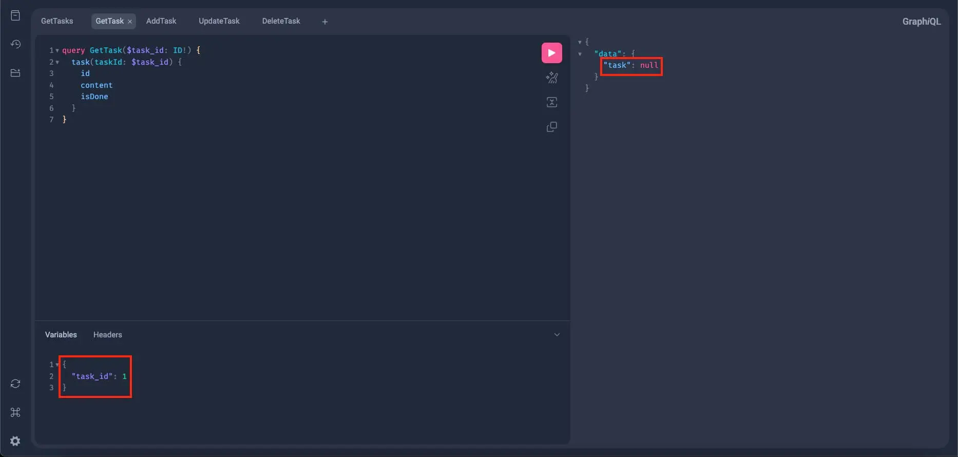 But before that, if you can remember, we have one more query named get_task. Let's test this query also.