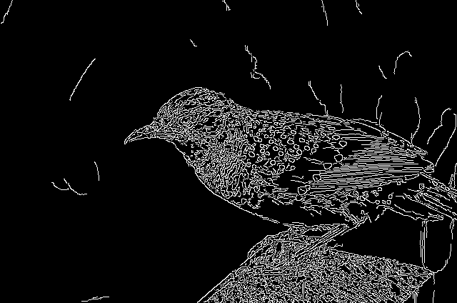 To do the canny edge detection, we specify the low and high threshold parameters for the Canny Edge Detection algorithm implemented in the OpenCV library. We then convert the output to the PIL image format: