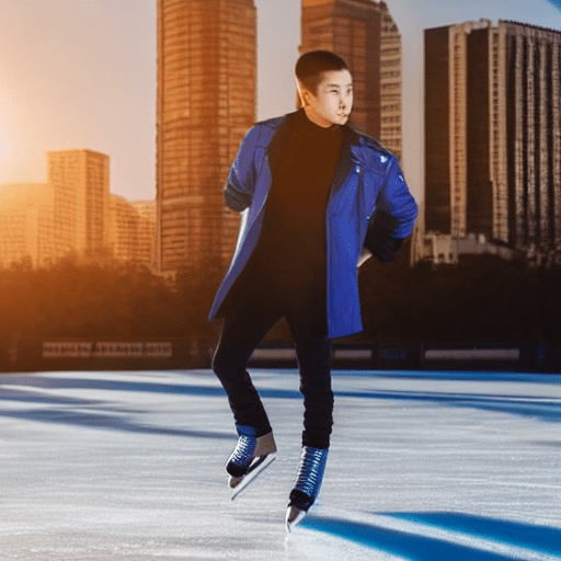 images_custom = custom_pipe("A professional ice skater wearing a dark blue jacket around sunset, realistic, UHD", image_pose, num_inference_steps=20)