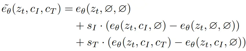 Since we have two conditional inputs, we can modify our classifier-free guidance equation as follows: